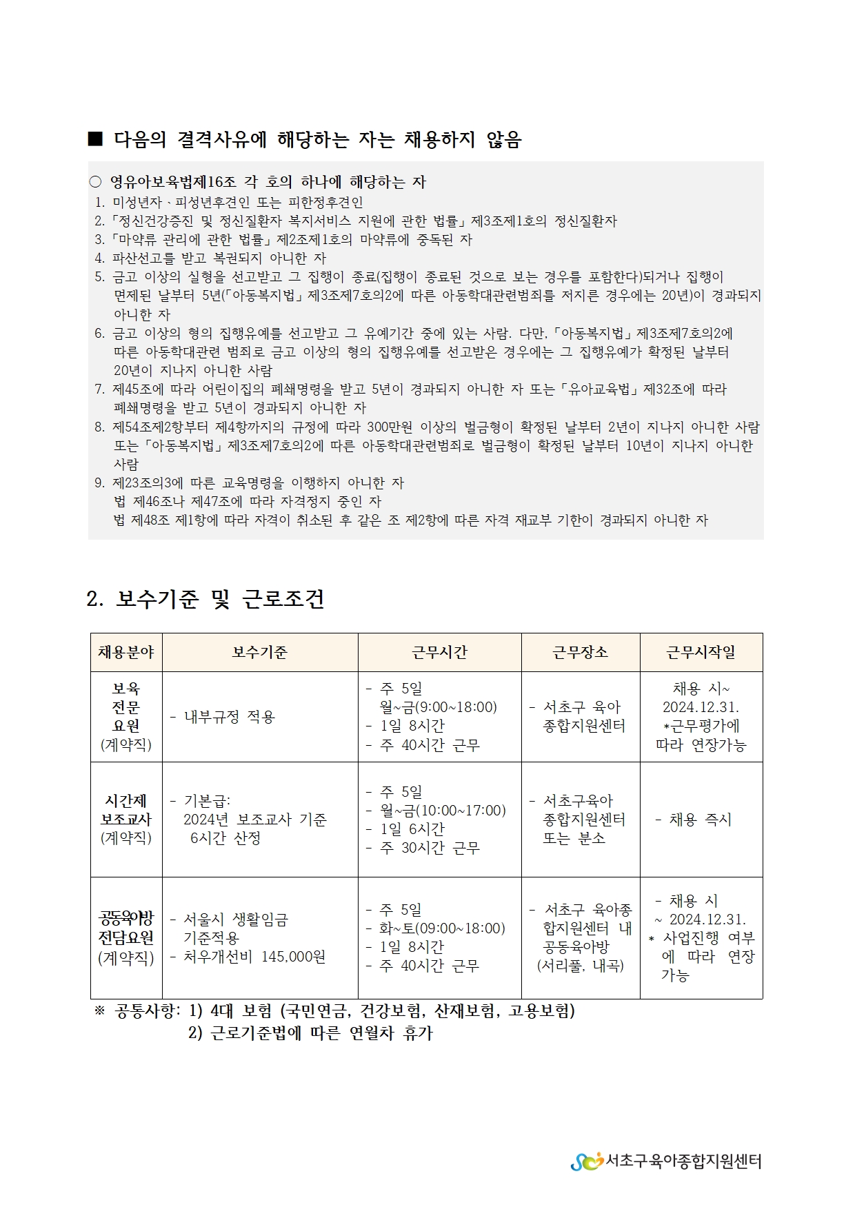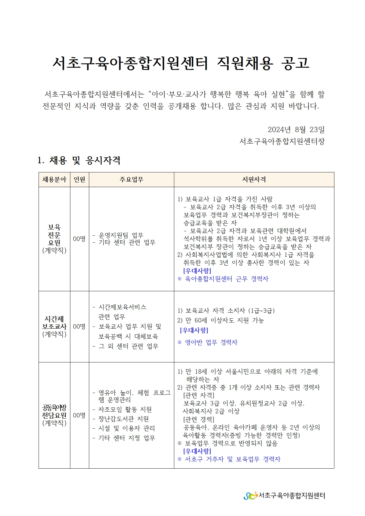 1. 서초구육아종합지원센터 직원채용 공고문(보육전문요원,시간제보조교사,공동육아방).pdf