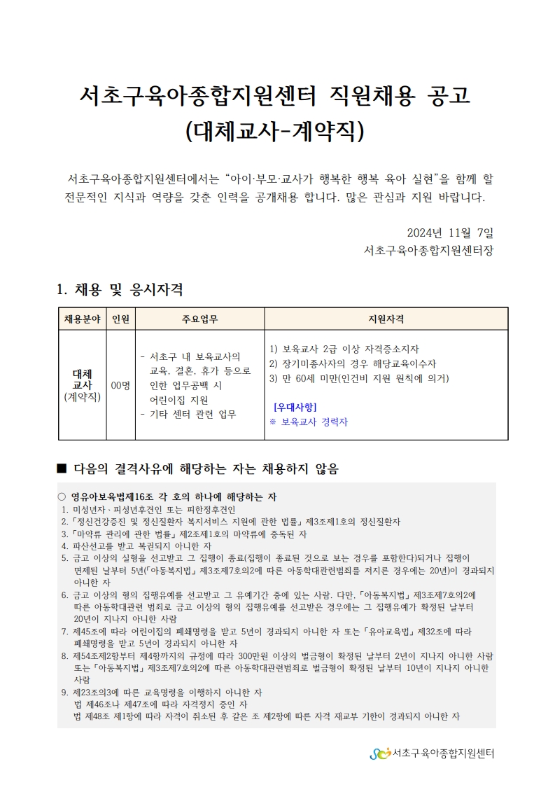 2. 서초구육아종합지원센터 직원채용 공고문(대체교사).pdf
