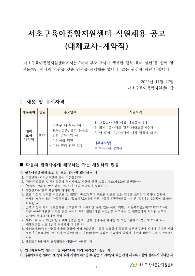 3. 서초구육아종합지원센터 직원채용 공고문(대체교사).pdf