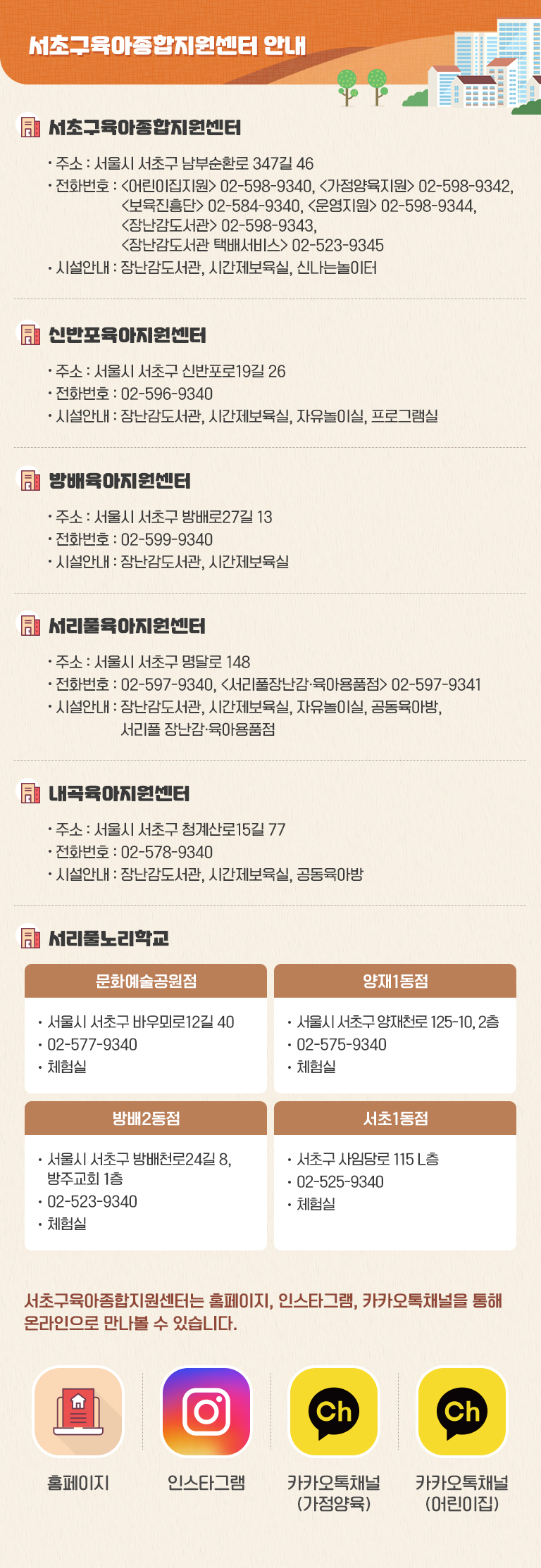 카카오톡채널(어린이집) 카카오톡채널(가정양육) 인스타그램 홈페이지