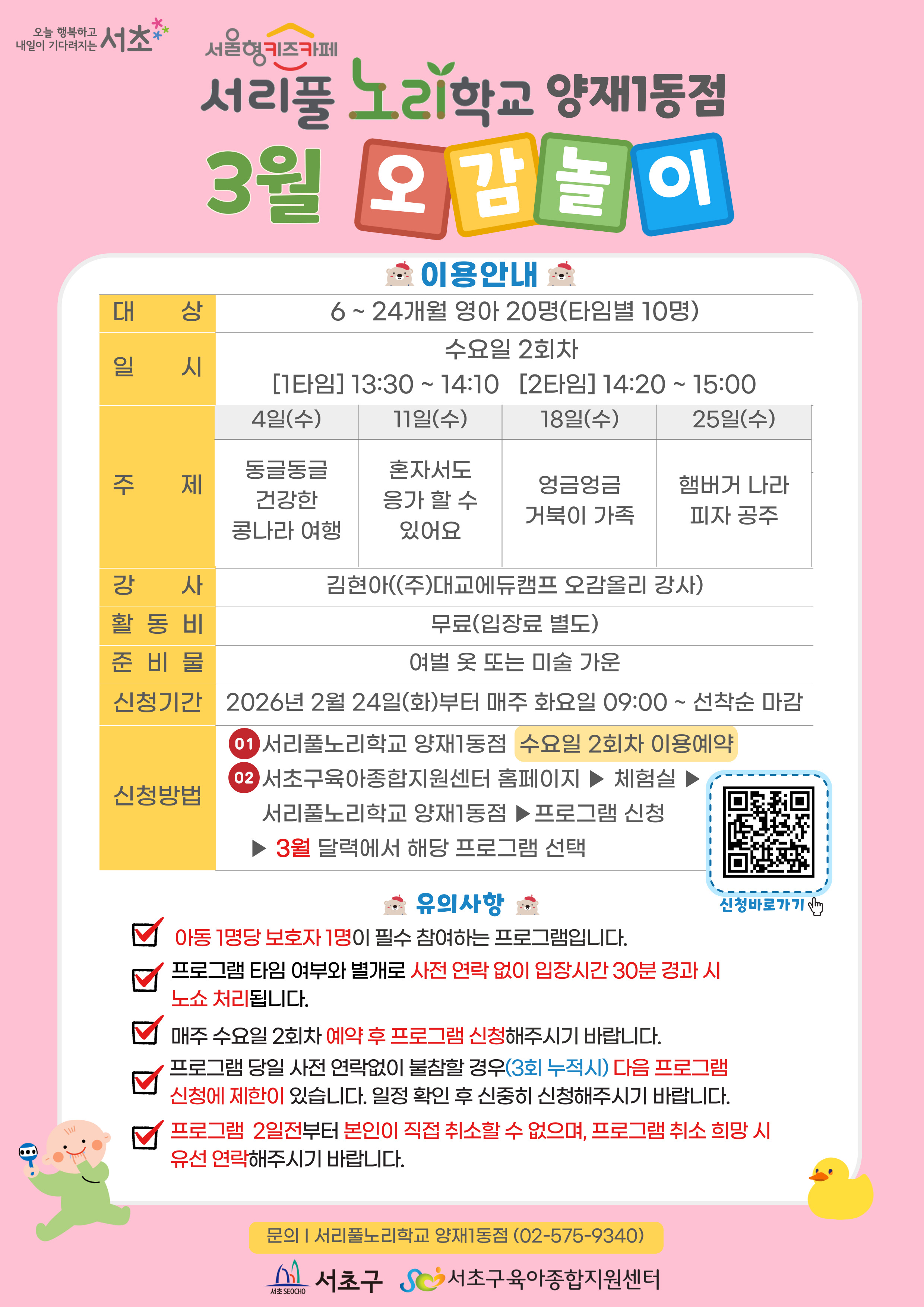 서초구육아종합지원센터 및 분소(체험실)의 위치, 전화번호를 안내해드립니다!