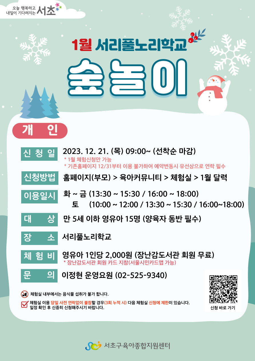 1. 서리풀노리학교는 접수 인원 15가정 이용할 수 있는 공간입니다.