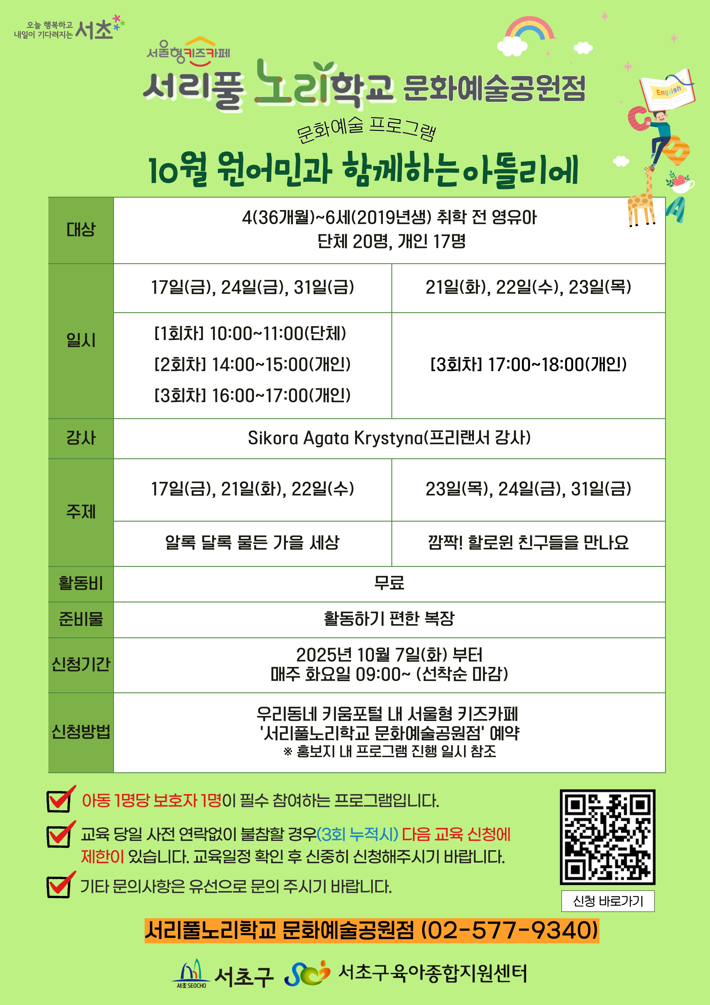 [프로그램] 10월 원어민과 함께하는 아뜰리에 프로그램 안내