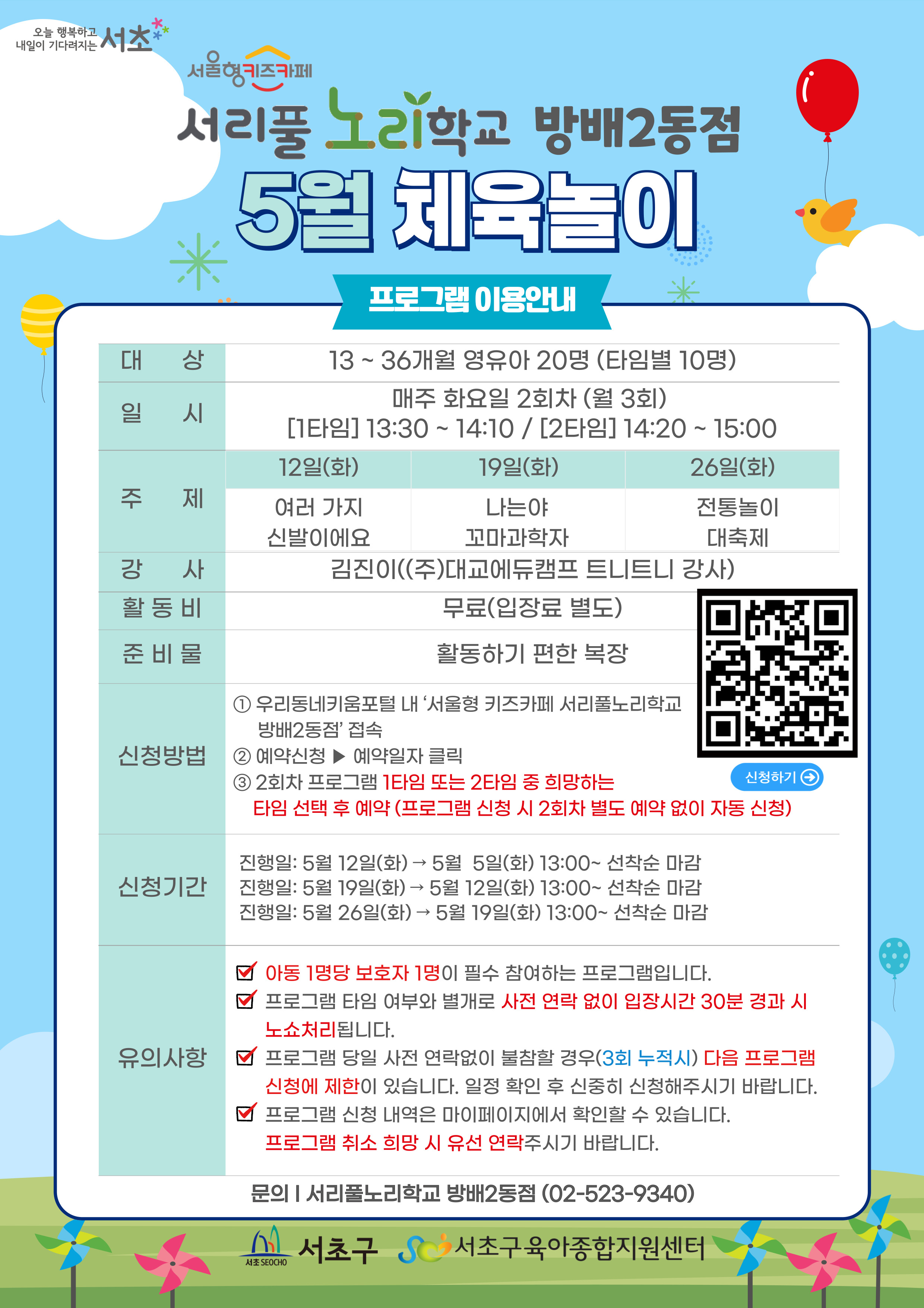[체험실] 서리풀노리학교 방배2동점 5월 미운영 안내