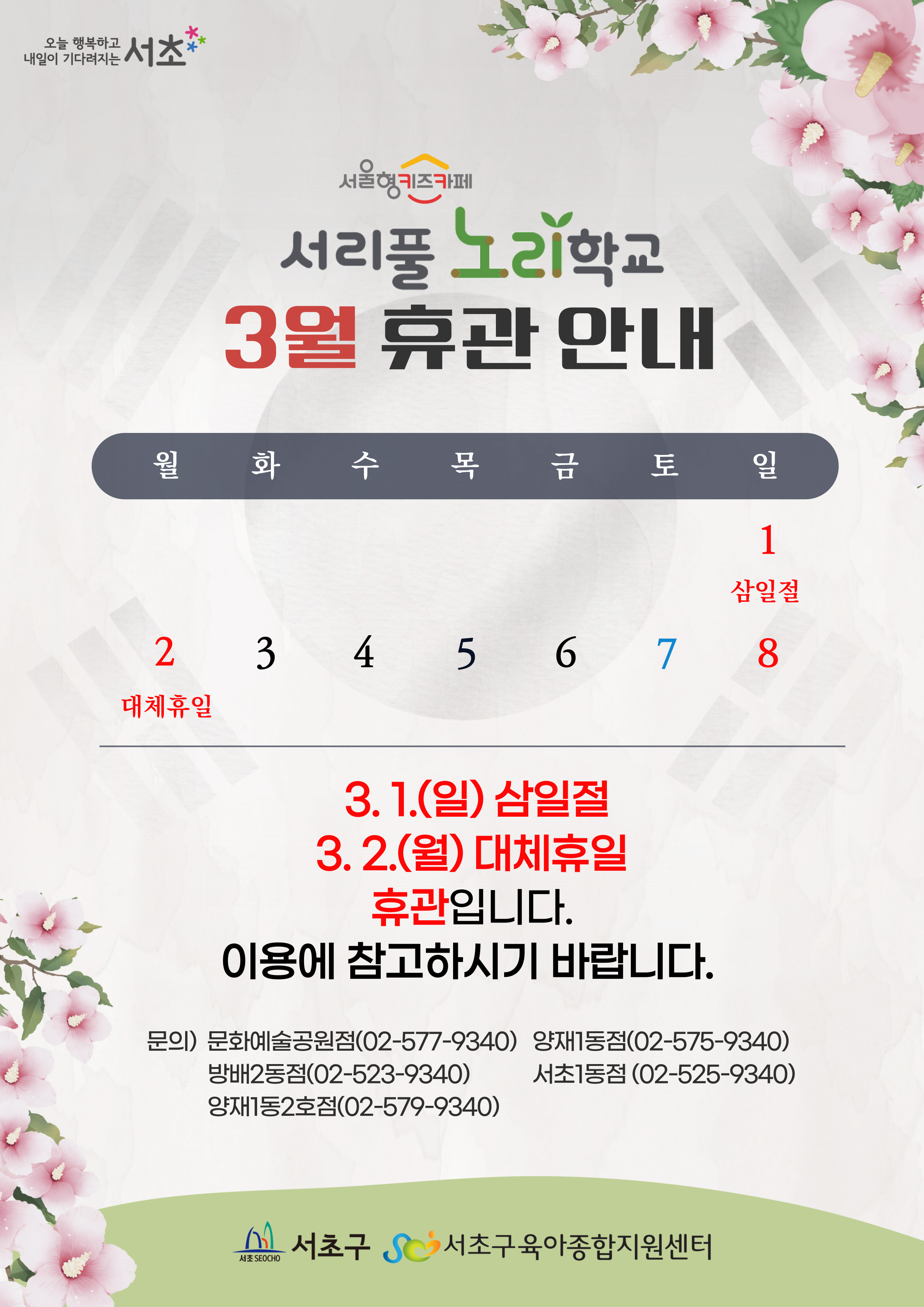 [체험실] 주말 놀이돌봄서비스 미운영 안내