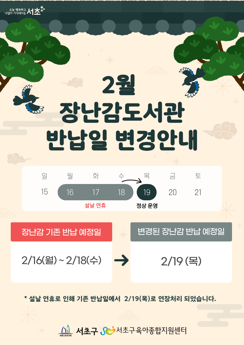 [장난감도서관] 2월 장난감도서관 반납일 변경 안내