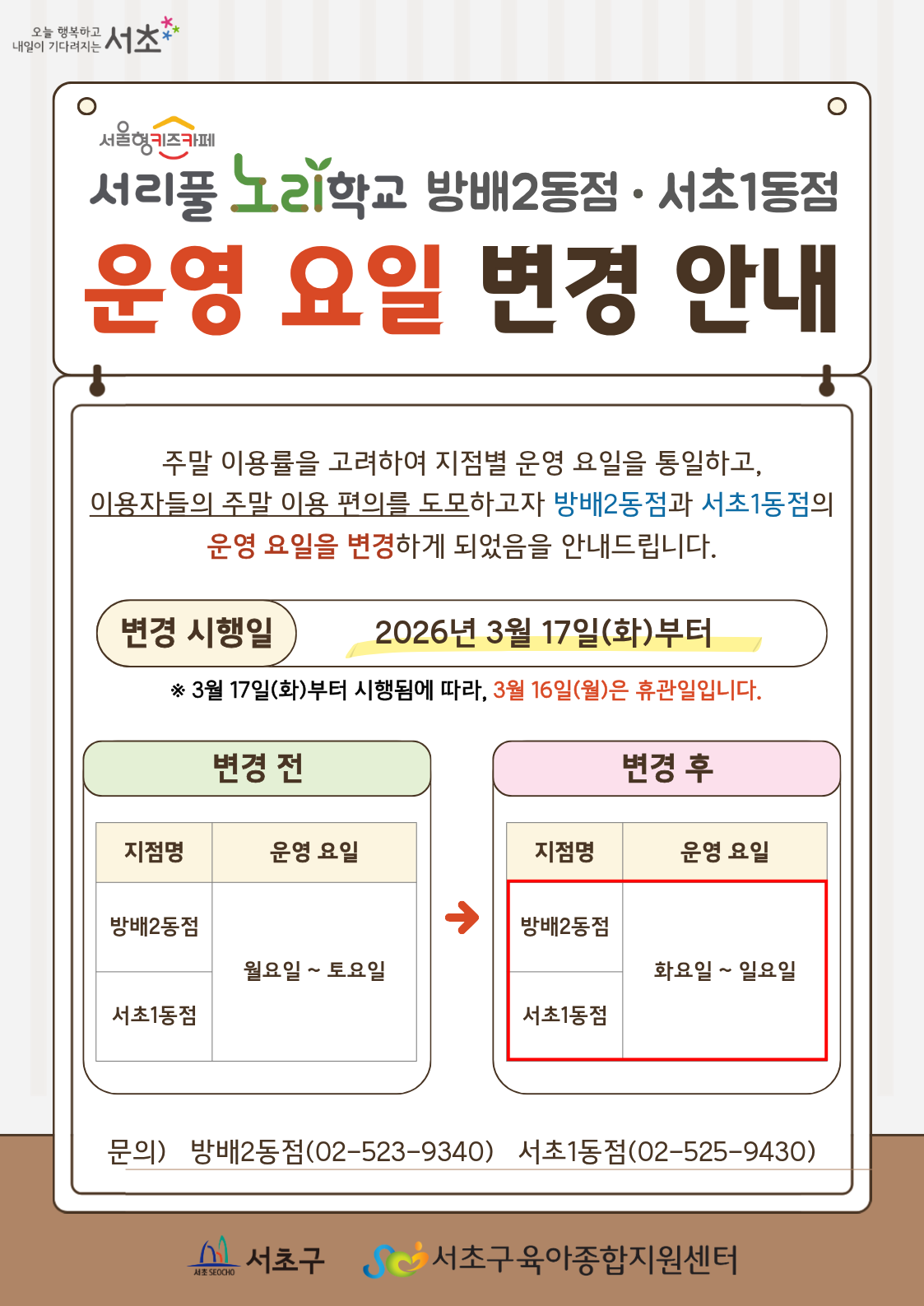 [체험실] 운영 요일 변경 안내