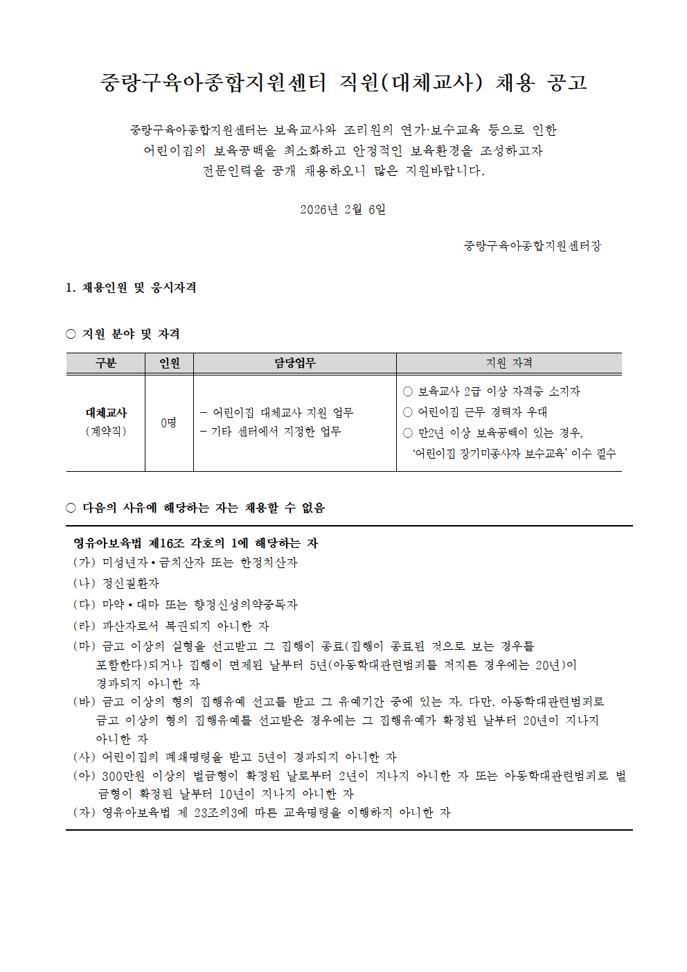 붙임1. 중랑구육아종합지원센터 직원 채용 공고문.pdf