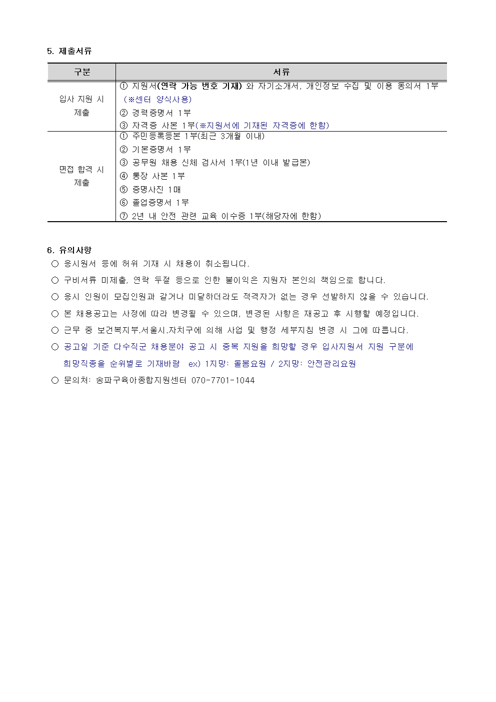 [서울 송파구육아종합지원센터] 서울형 키즈카페 어린이문화회관점 직원 채용 공고
