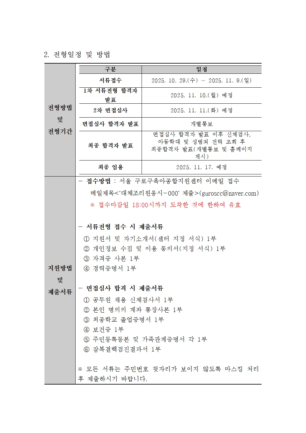 붙임 1. 서울 구로구육아종합지원센터 직원(대체조리원) 채용 재공고문 1부.pdf