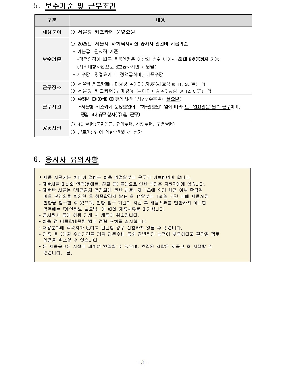 붙임 1. 서울 광진구육아종합지원센터-_서울형 키즈카페_ 직원 채용 공고(키카-제25-9).hwp