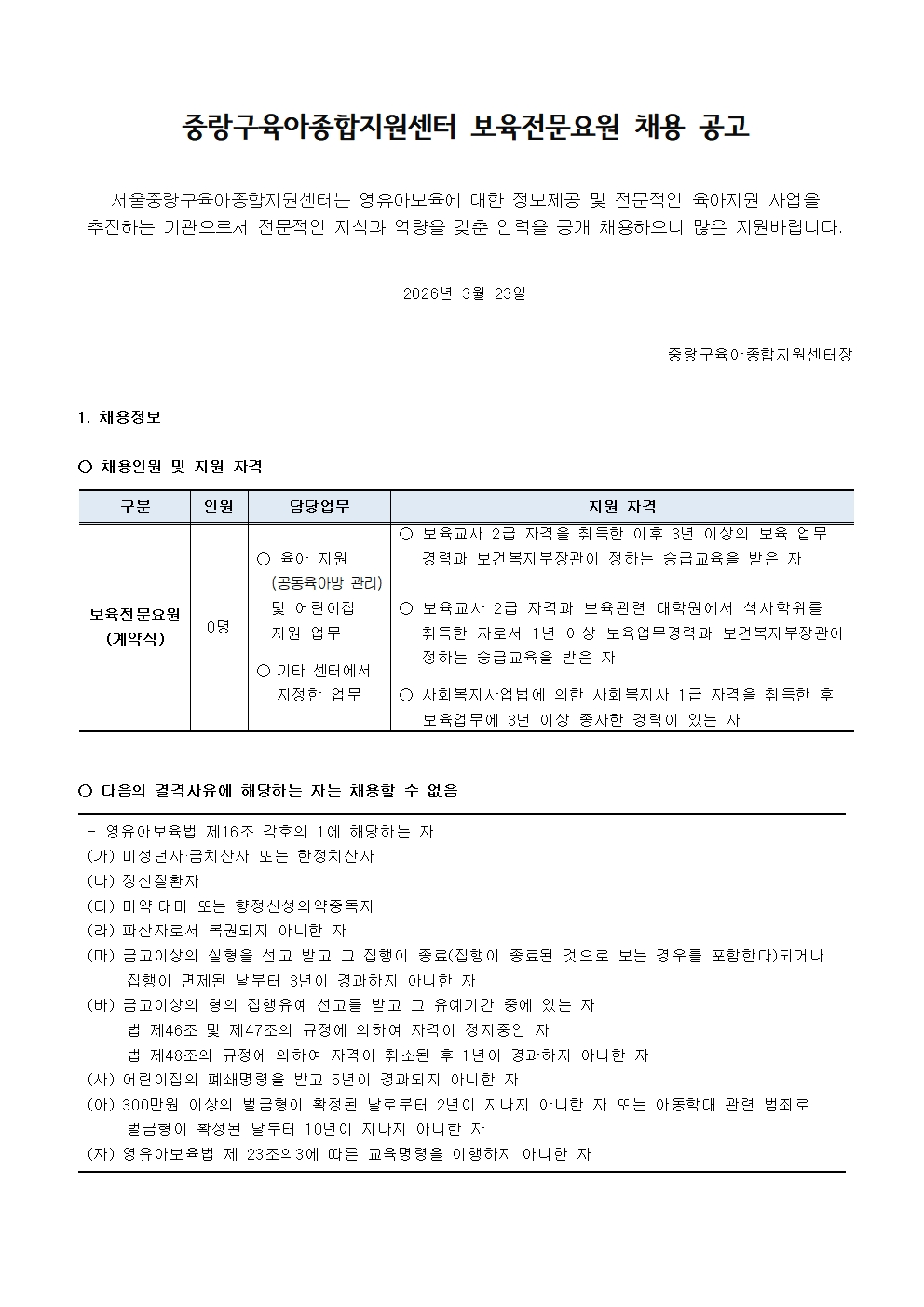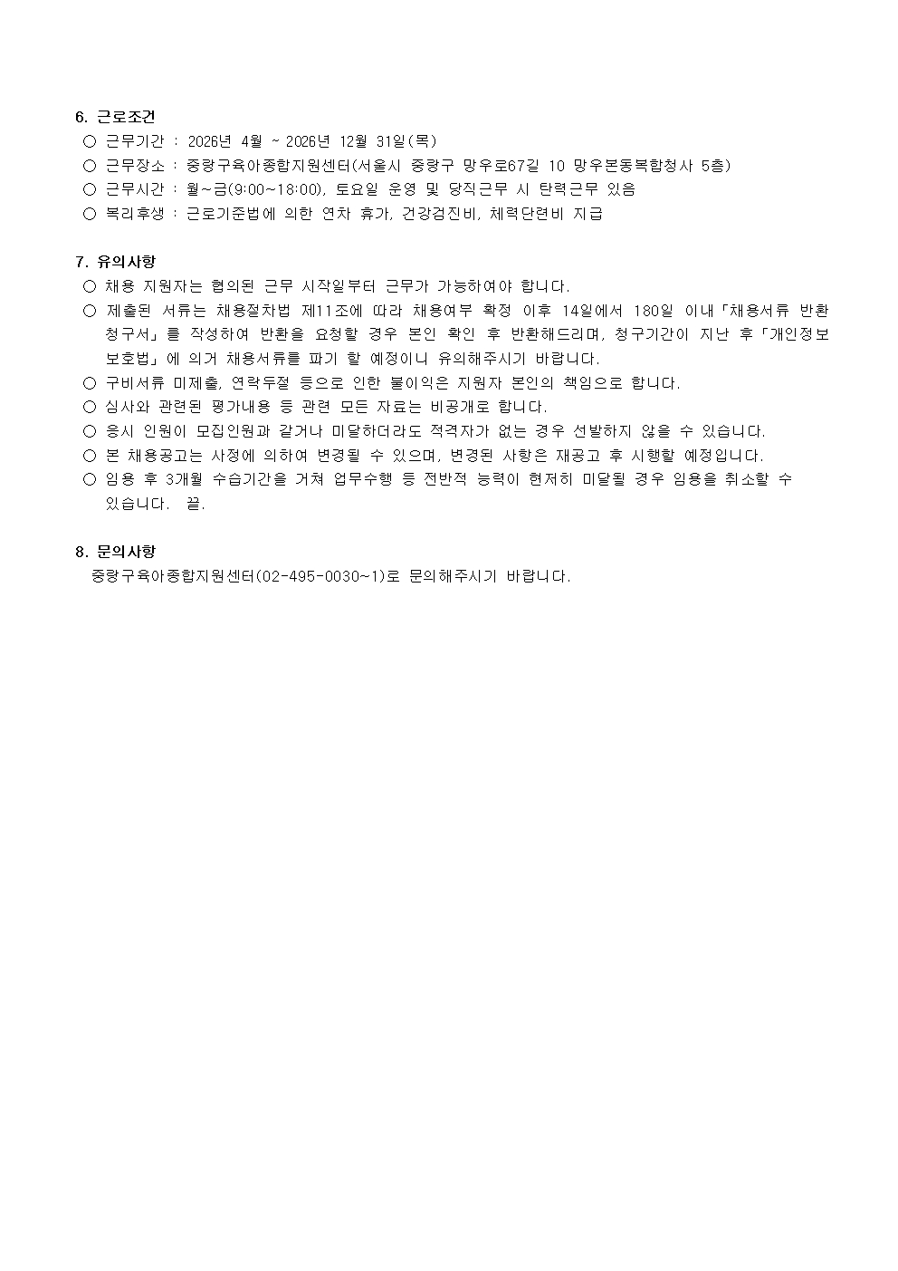 붙임1. 중랑구육아종합지원센터 직원 채용 공고문.pdf