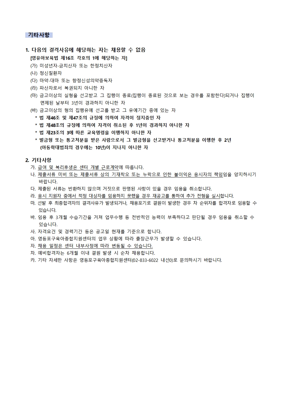 [서울 영등포구육아종합지원센터] 장난감도서관 운영요원 채용 공고