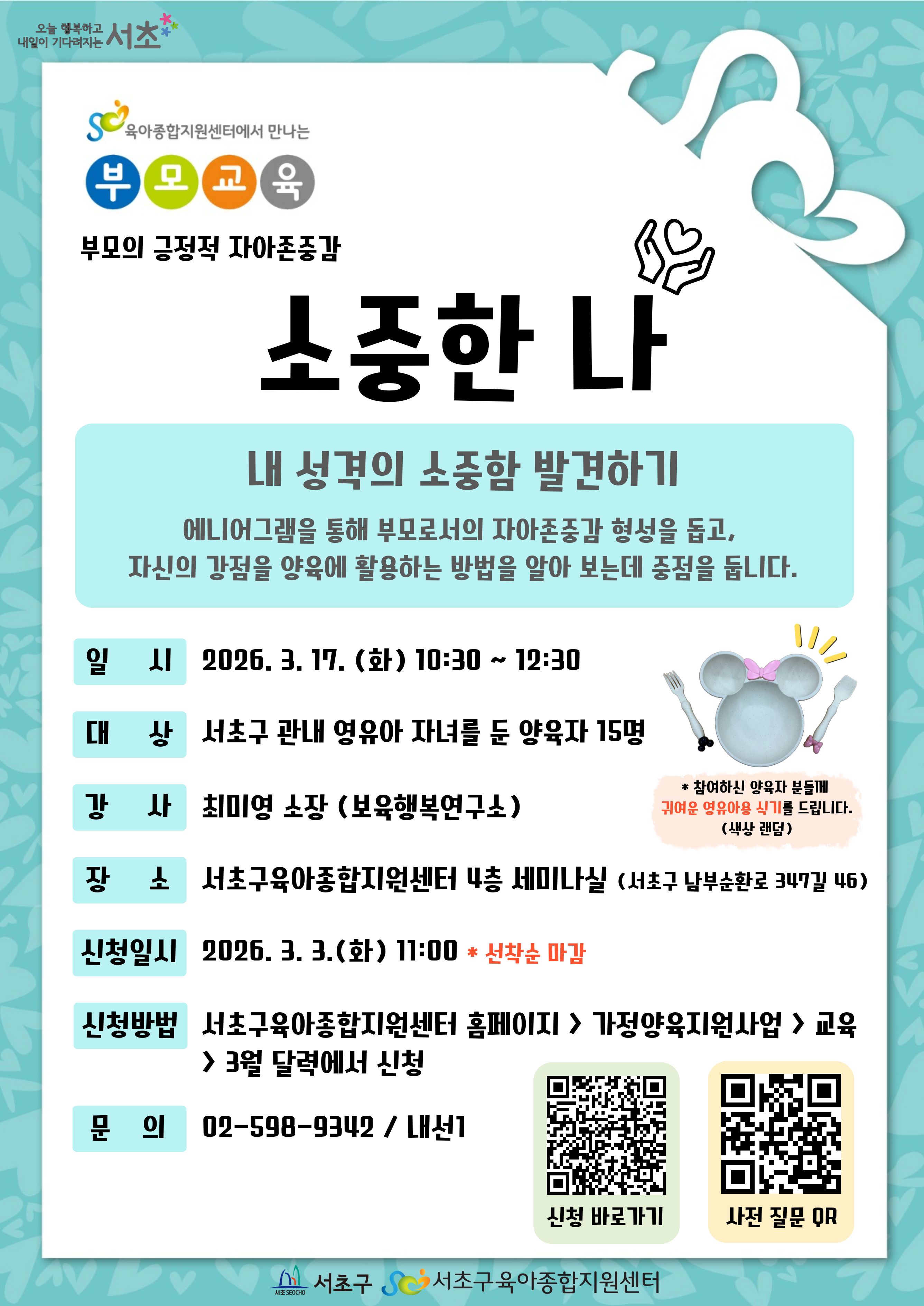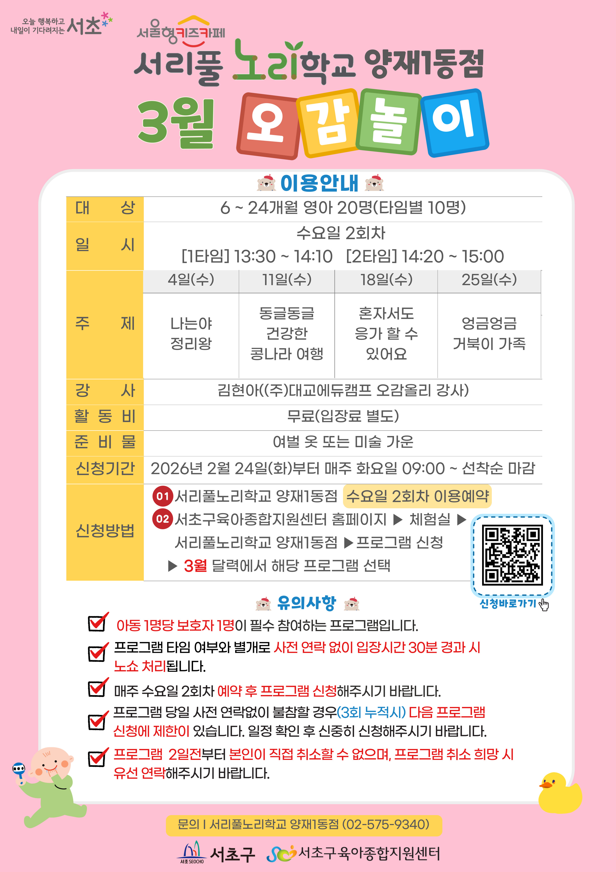 서초구육아종합지원센터 및 분소(체험실)의 위치, 전화번호를 안내해드립니다!